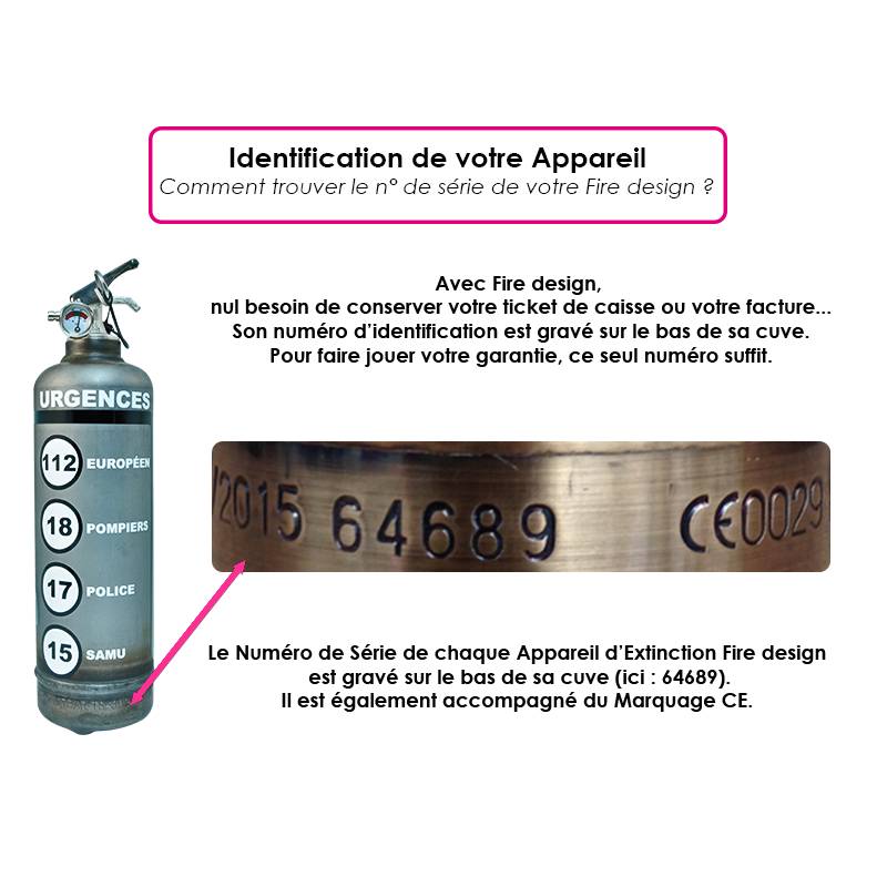 - Le manomètre de contrôle permet de visualiser le bon état de fonctionnement de l'appareil. Le scellé millésimé de la goupille vous assure une garantie de 10 ans contre tout vice de fabrication.