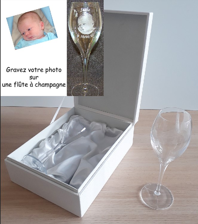 Coffret flûtes photo champagne gravées blanc