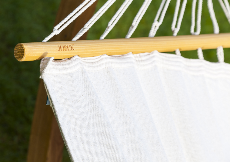 Plus produit : Cette toile pour hamac combine le confort du coton et les nombreux avantages d’une fibre technologiquement avancée : Meilleure résistance aux UV, tissu antimicrobien, facilité d’entretien et séchage très rapide grâce un taux de rétention d’eau inférieur à 0.01%.