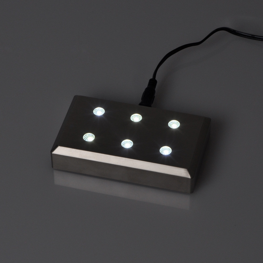Encore plus approprié est le socle de lumière correspondante: La base lumineuse Helio d'aspect acier inoxydable brossé s'intègre donc très bien avec le verre Viamant. 6 LED CMS très lumineuses et uniformément réparties avec diffuseur garantissent un éclairage très homogène de votre photo laser 3D.