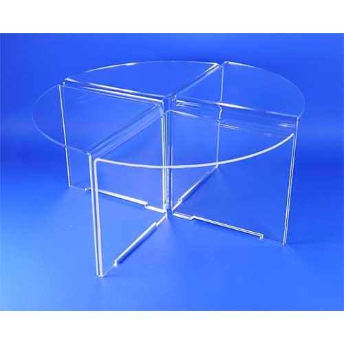 Ces tables gigognes en 4 quarts de cercle en plexi font un mètre de diamètre.